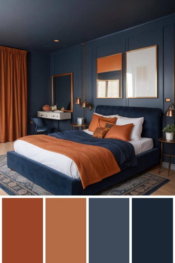 3) Indygo + ceglany / terracotta