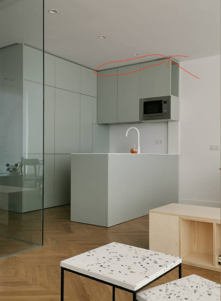Jedna z najczęstszych rzeczy, które widzę w mieszkaniach, to szafki kończące się 20–30 cm przed sufitem, albo … 7 cm #najgorzej. Na wizualizacji wygląda to lekko, ładnie, ciekawie, a w prawdziwym życiu oznacza jedno: półkę na kurz, od czau do czasu przecieranie i wchodzenie po drabinie. Co gorsza, to nie jest zwykły kurz. Tam zbiera się wszystko – kurz, tłuszcz z kuchni, czasem nawet pajęczyny. A żeby to wyczyścić, trzeba wchodzić na krzesło albo drabinę. Czyli coś, czego nikt nie robi często.