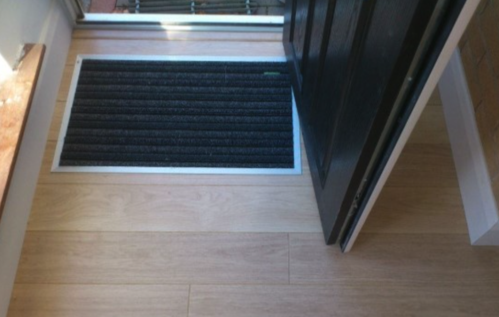 Pierwsza rzecz to wpuszczana w podłogę wycieraczka przy wejściu.